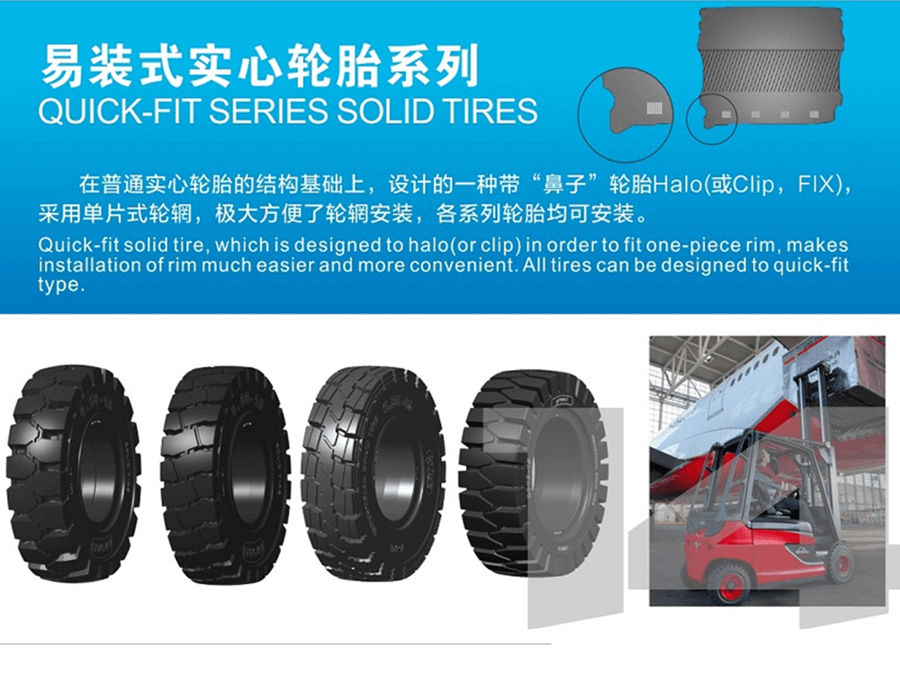 Benefits: Based on the structure of the common solid tire, a Halo (or Clip, FlX) with a "nose" is designed, which is a single piece of wheel rim, which greatly facilitates the installation of the wheel rim.