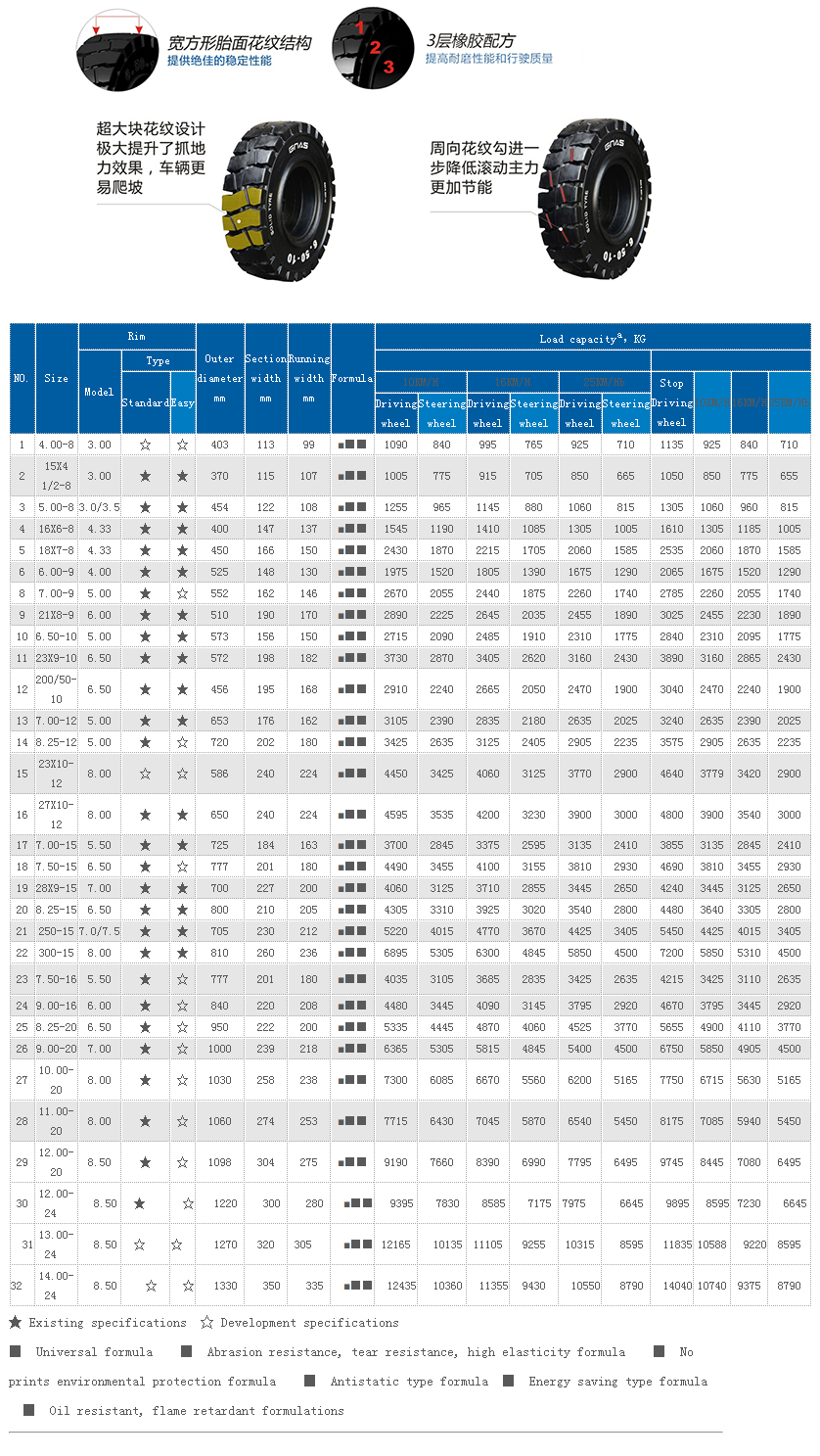 Benefits: Good grip, load, suitable for general forklift rental,port Iow speed vehicles